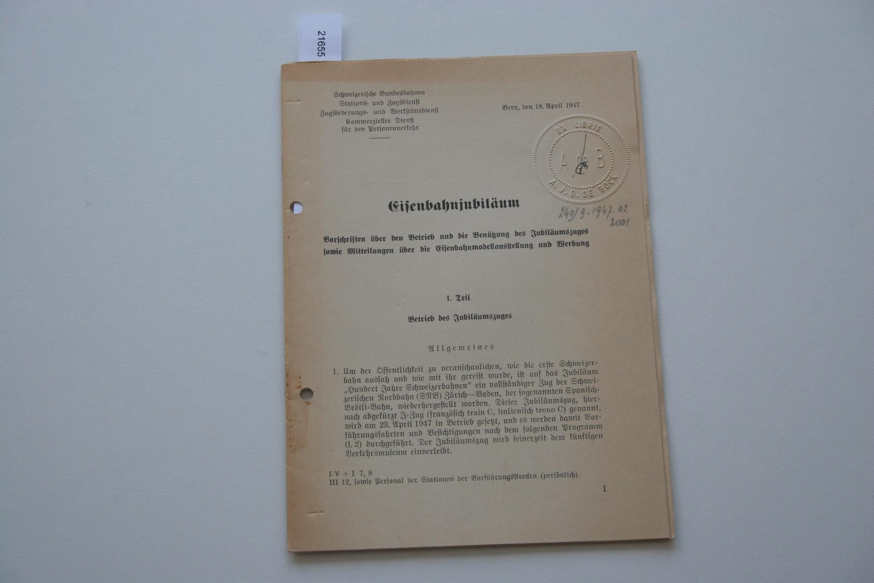 Titel: Vorschrift SBB: Eisenbahnjubiläum Vorschriften uber den Betrieb und die Benutzung des Jubiläumszuges sowie Mitteilungen über die Eisenbahnmodellausstellung und Werbung Auteur(s): - 1655 - Vorschrift SBB: Eisenbahnjubiläum Vorschriften ube... [€ 5,00] |