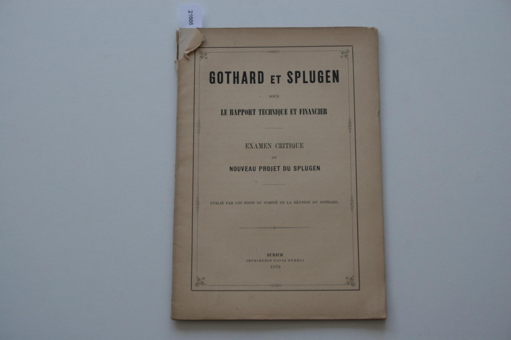 Titel: Gothard et Splugen sous le rapport technique et financier, examen critique du noveau projet du Splugen Auteur(s): - 1666 - Gothard et Splugen sous le rapport technique et fi... [€ 5,00] |