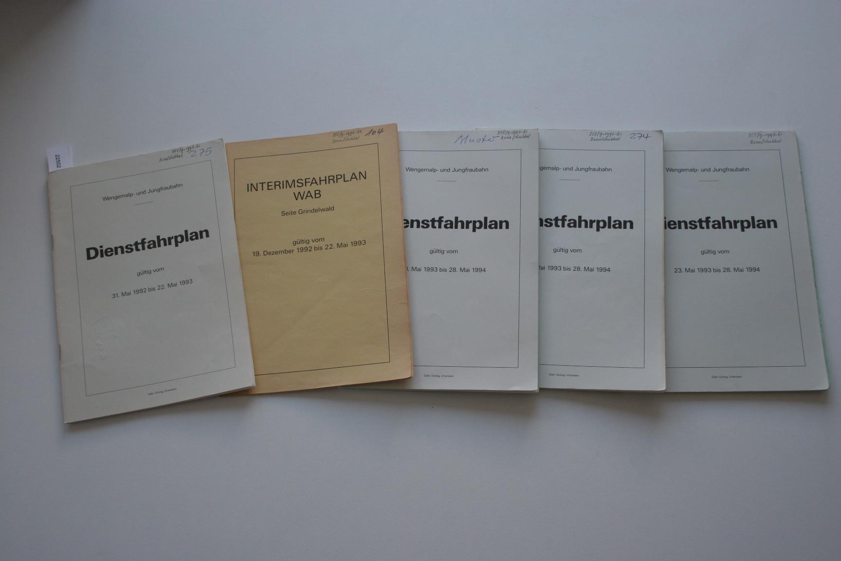 Titel: Vorschrift: Dienstfahrplan Wengeralp- und Jungfraubahn 1992/1993 + 3x 1993/1994 + Interimsfahrplan 1992/1993 Auteur(s): - 2502 - Vorschrift: Dienstfahrplan Wengeralp- und Jungfrau... [€ 8,00] |