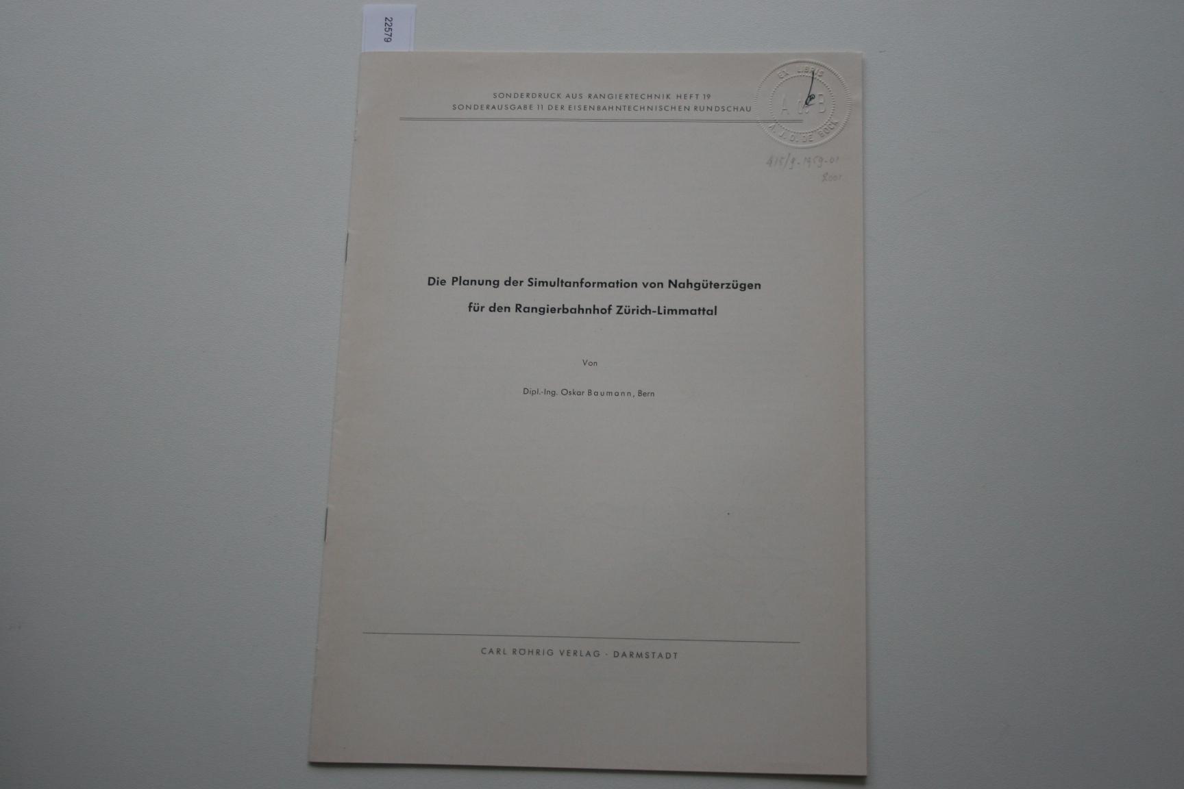 Titel: Brochure: Die Planung der Simultanformation von Nahgüterzügen für den Rangierbahnhof Zürich=Limattal Auteur(s): - 2579 - Brochure: Die Planung der Simultanformation von Na... [€ 3,00] |